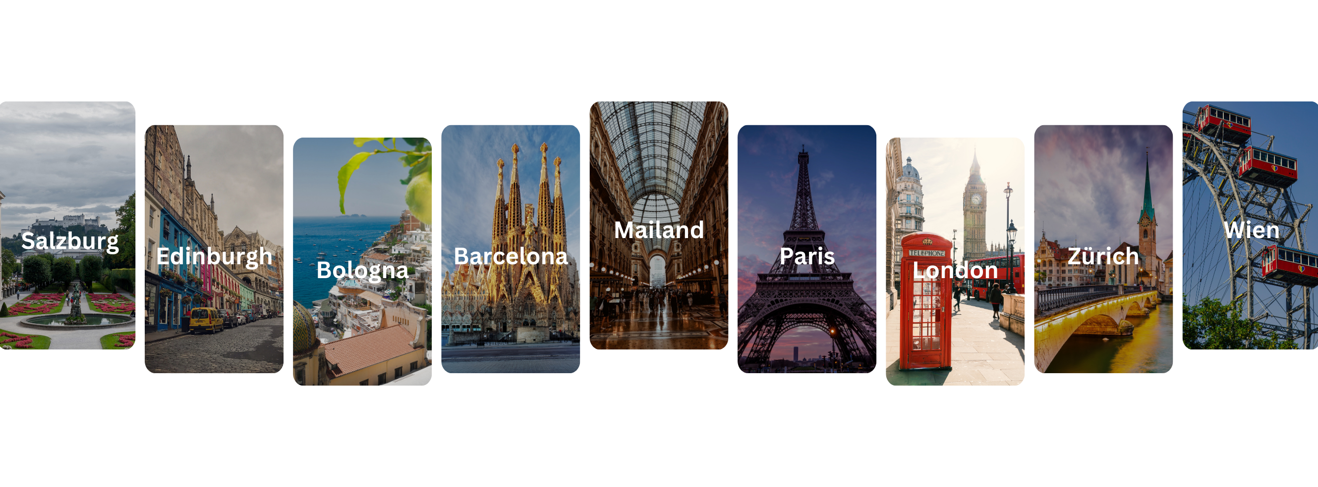 Hierbei handelt es sich um Beispiele. Neben den angezeigten Städten verbergen sich weitere europäische Schätze.
